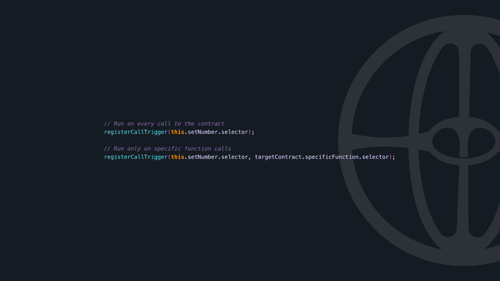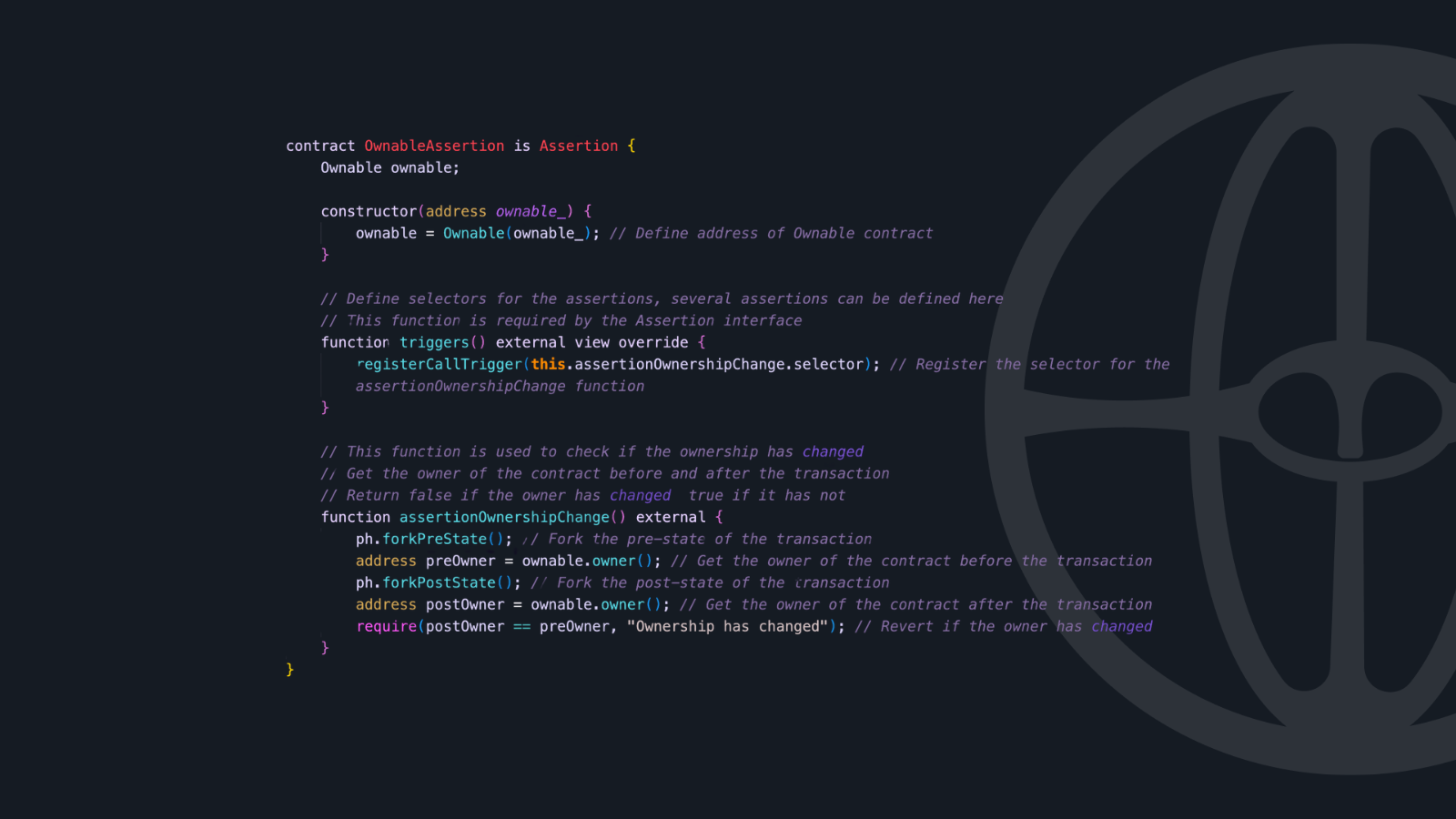 The trigger system makes it easy to specify exactly when your assertions should run, whether that's on specific function calls, storage changes, or ETH balance changes. If you can write Solidity code, you can write Phylax assertions with minimal additional learning.